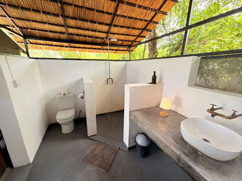 Your safari tent is well-equipped with two single beds covered by one large mosquito net. It has a beautiful outdoor en-suite bathroom and basic amenities.