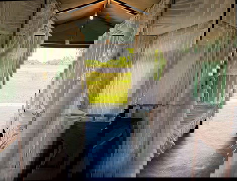 Your safari tent is well-equipped with two single beds covered by one large mosquito net. It has a beautiful outdoor en-suite bathroom and basic amenities.