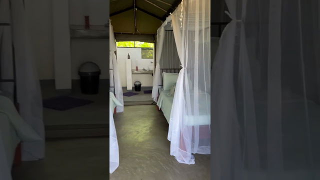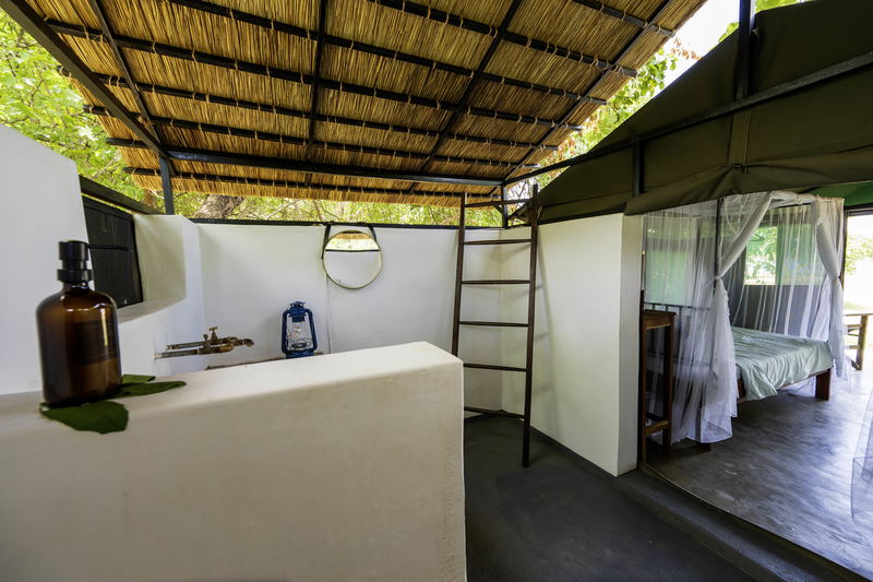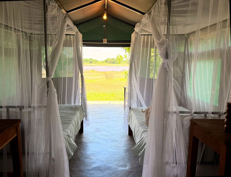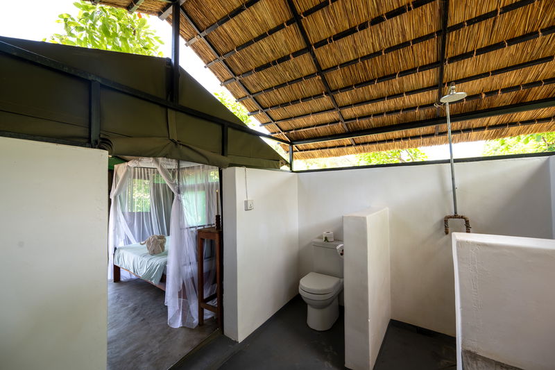 Your safari tent is well-equipped with two single beds covered by one large mosquito net. It has a beautiful outdoor en-suite bathroom and basic amenities.